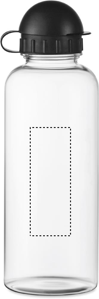 RPET 500 ml juomapullo PP korkilla, tuote on BPA ja vuoto vapaa. Tuote ei sovellu käytettäväksi hiilihapollisilla nesteille.