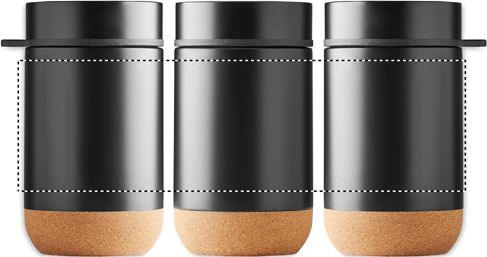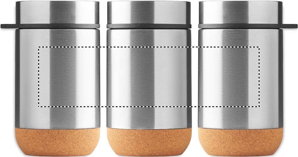 Kaksiseinäinen ruostumattomasta teräksestä valmistettu säilytyspurkki, jossa on kierrekansi ja korkkipohja. Sisältää lusikan. Tilavuus 400 ml.