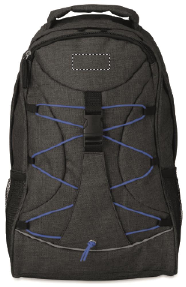 600D 2 sävyinen polyesteri reppu, pimeässä hohtavilla kontrasti nauhoilla ja sivuilla verkkotaskut.