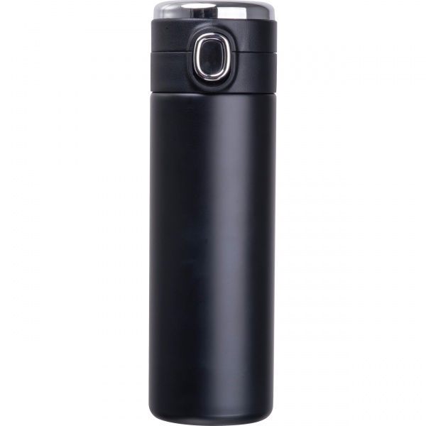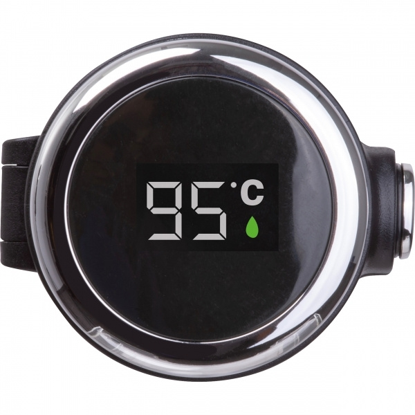 Tyhjiöeristetty ruostumattomasta teräksestä valmistettu pullo, jossa on lämpötilanäyttö kannessa ja turvalukko. Maksimilämpötilan näyttö: 99 °C. Logosi on kaiverrettu pulloon laserkaiverruksella.