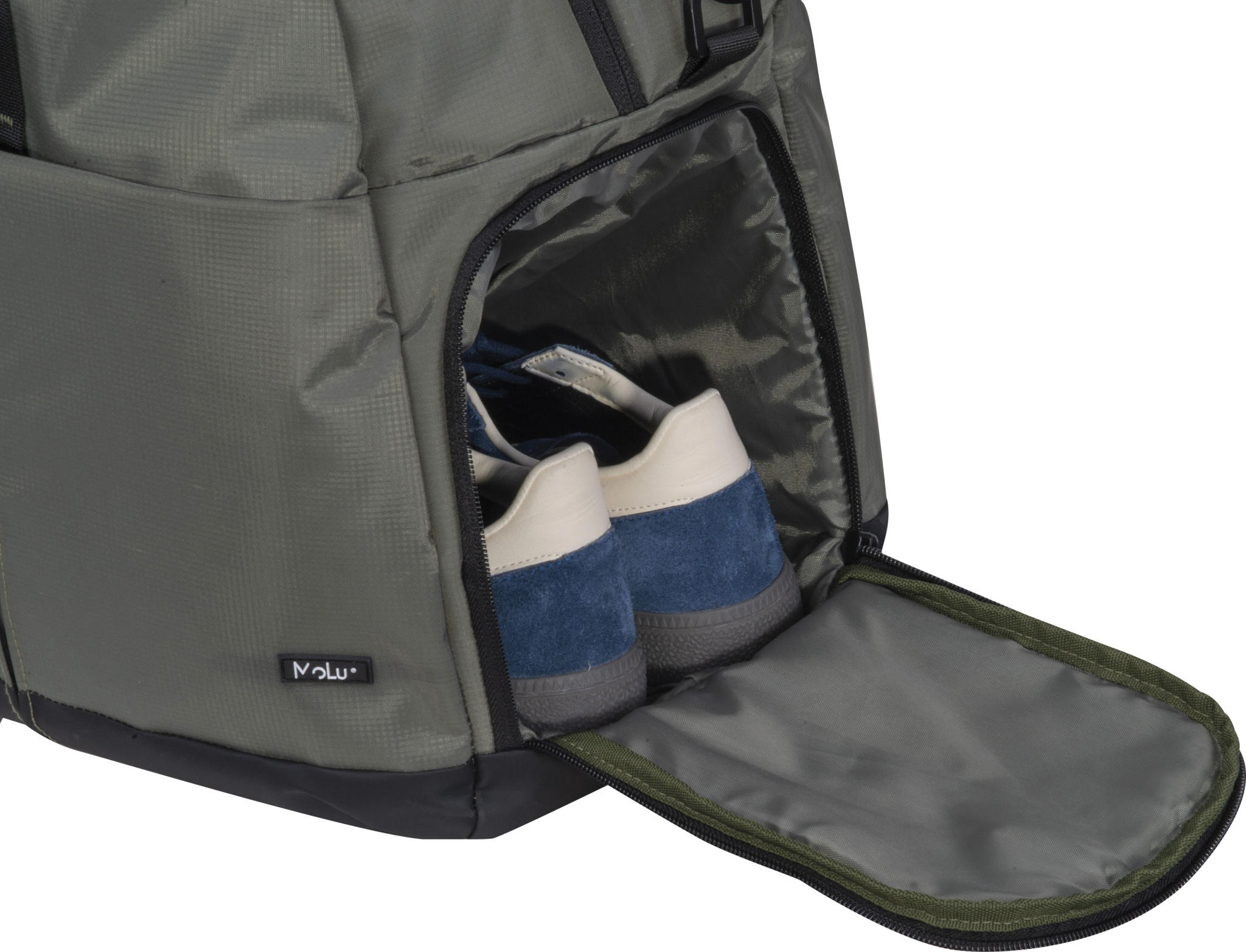 MoLu XXL urheilu- ja matkalaukku – oliivinvihreä, kestävä ja kestävä. Täydellisesti MoLu-vyölaukkuun sopiva – sama ulkonäkö, sama standardi. Runsaasti tilaa urheiluun, matkustamiseen ja arkeen – erillinen kenkälokero lisämukavuutta varten. Valmistettu kierrätetystä PET-muovista, kestävä ja huolellisesti suunniteltu. Todellinen tilansäästäjä tyylikkäästi – kaikelle tarvittavalle.