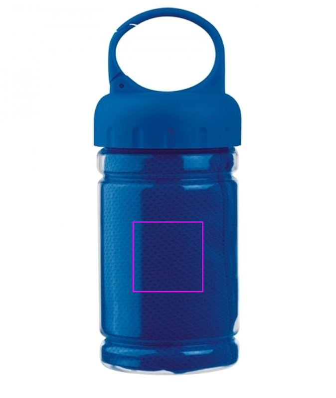 Loistava seuralainen urheiluun, jäähdytyspyyhe, joka on pakattu muovipulloon, jossa on karabiini. Painamme logosi pulloon (vain 1C mahdollista).