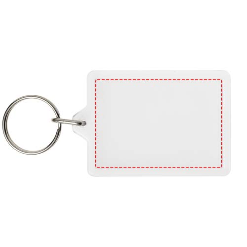 Kirkas suorakaiteenmuotoinen C1-avaimenperä, jossa on metallinen avainrengas. Metallirengas tekee profiilista litteän, mikä on ihanteellista postituksen kannalta. Tulosteinsertin mitat: 5,0 cm x 3,5 cm.