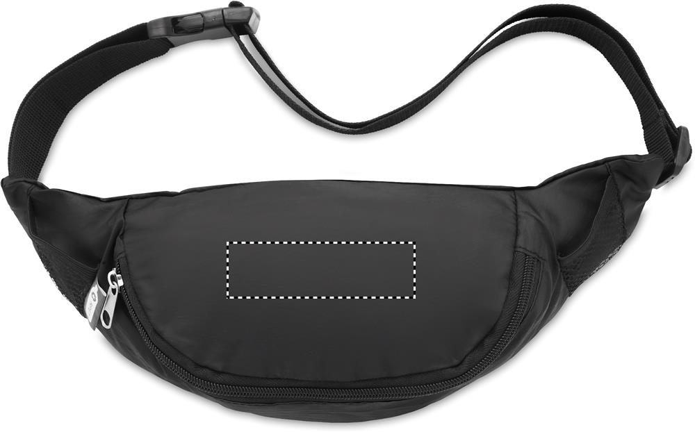 210D RPET vyölaukku, säädettävällä vyötärönauhalla ja päälokero vetoketjulla.