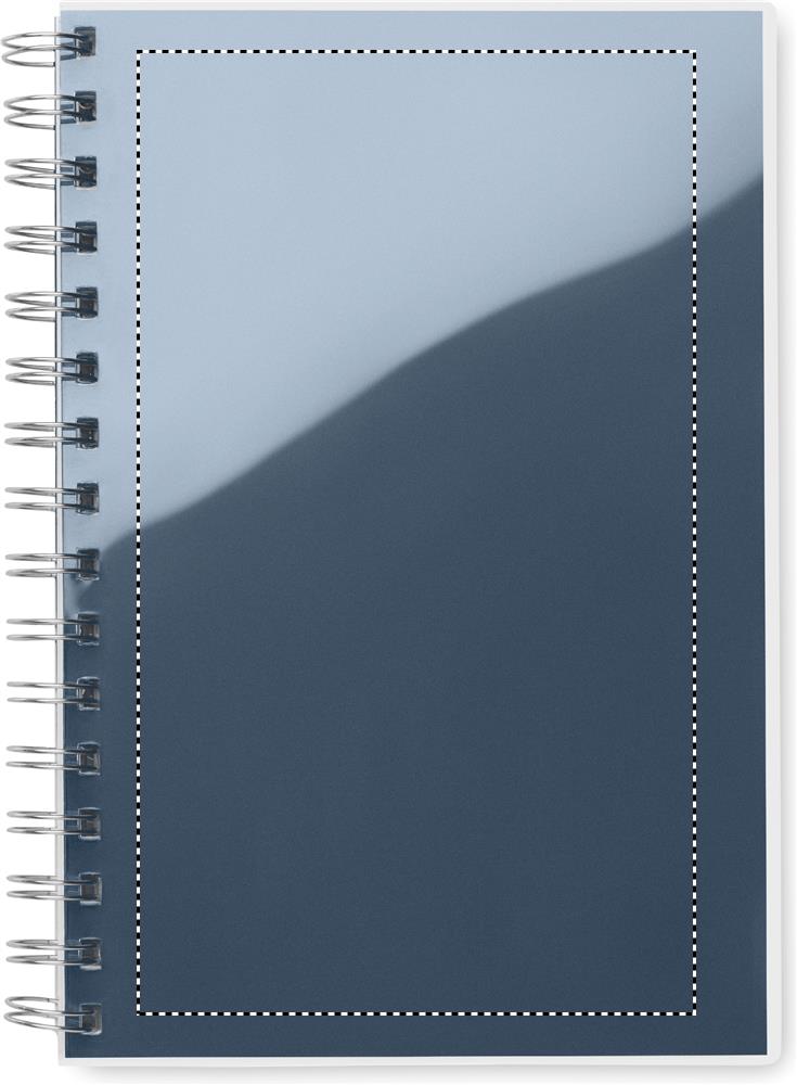A5 formato užrašų knygelė su RPET dangteliu. Dvigubas laidas. 160 perdirbtų baltų linijinių puslapių (80 lapų).