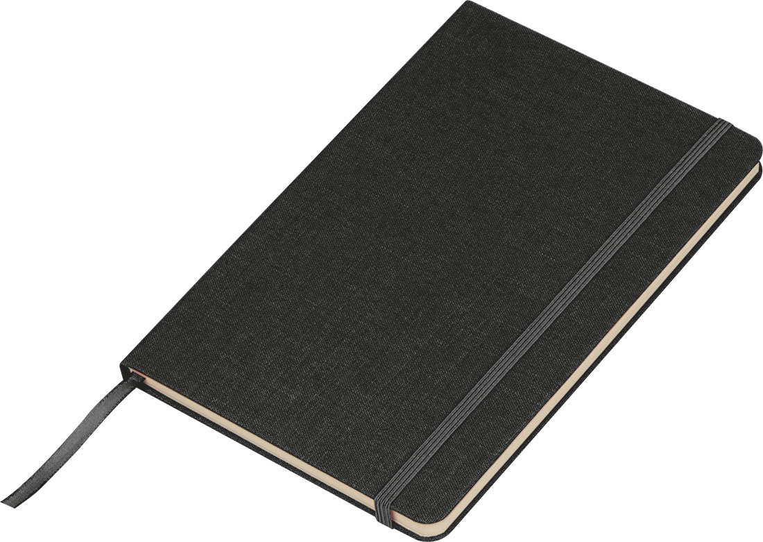 Tvarus A5 bloknotas su austiniu viršeliu, pagamintu iš perdirbto PET ir 160 puslapių cukranendrių popieriaus. Jame taip pat yra žymė ir elastinga užsegimo juosta.