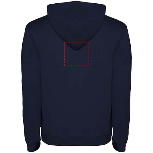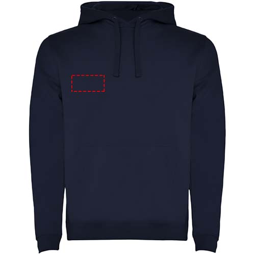 Dviejų spalvų gobtuvas iš dvigubo audinio. Sustiprintos dengtos siūlės apykaklėje ir kengūros stiliaus kišenė. 1x1 elastano briaunelė rankogalyje ir juosmenyje. Nuimama etiketė. Modelis yra 120 cm ūgio ir dėvi 5/6 dydį.