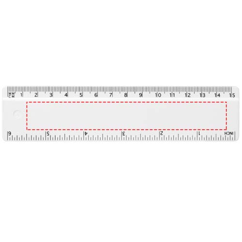Tvirta perdirbto plastiko liniuotė su ženklais tiek coliais, tiek centimetrais.
