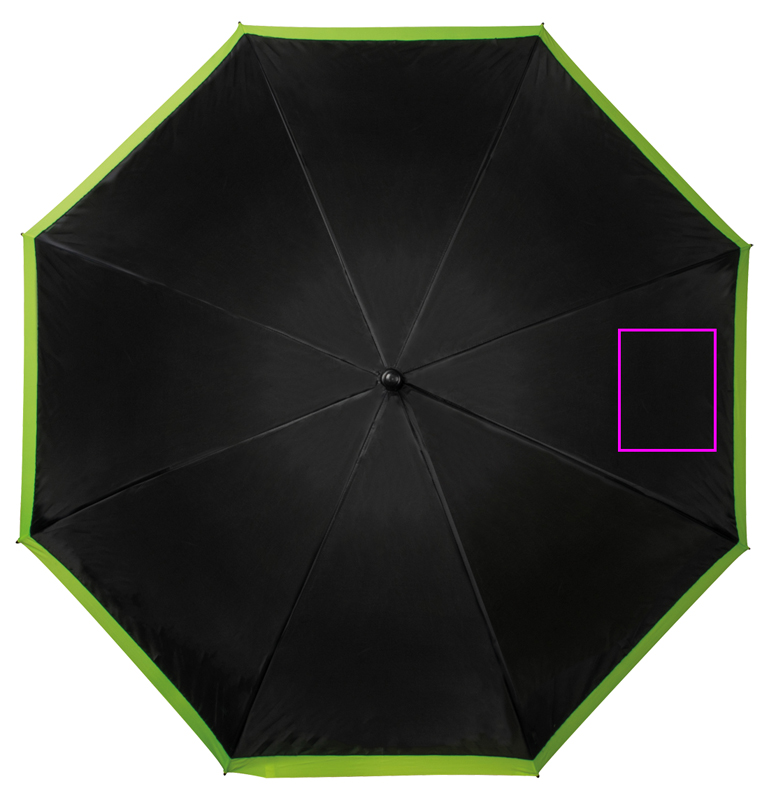 Didelis skėtis, kuris atkreips dėmesį į save ir jūsų logotipą dėl savo juodos-neoninės ir geltonos spalvos kontrasto (190T poliesteris.) Atspausdiname Jūsų logotipą ant segmento.
