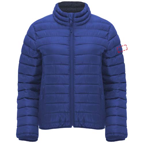 Moteriška dygsniuota striukė su plunksnų paminkštinimu. Apversti užtrauktukai su tinkama smakro apsauga ir trauktuku. Dvi priekinės kišenės su užtrauktukais. Derantys elastiniai apvadai apykaklėje, rankogaliai ir apačia. Kontrastingas vidinis pamušalas. Apima nešiojimo krepšį. Lengvas ir sulankstomas drabužis. Pritaikytas kirpimas. Nuimama etiketė. Atsparus vandeniui. Atsparus vėjui. Modelis yra 179 cm ūgio ir dėvi S dydį.