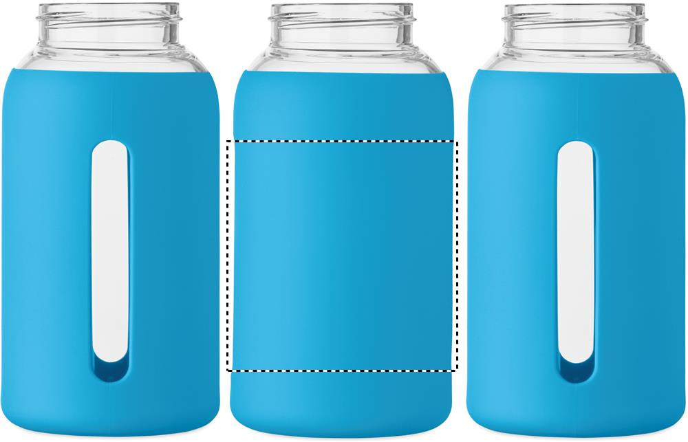 Augsta borosilikāta stikla pudele ar silikona maisiņu un PP vāku ar rokturi. Tilpums: 600 ml