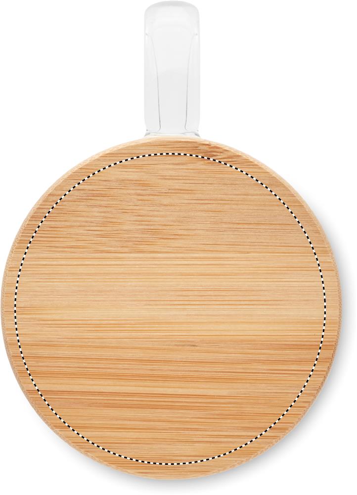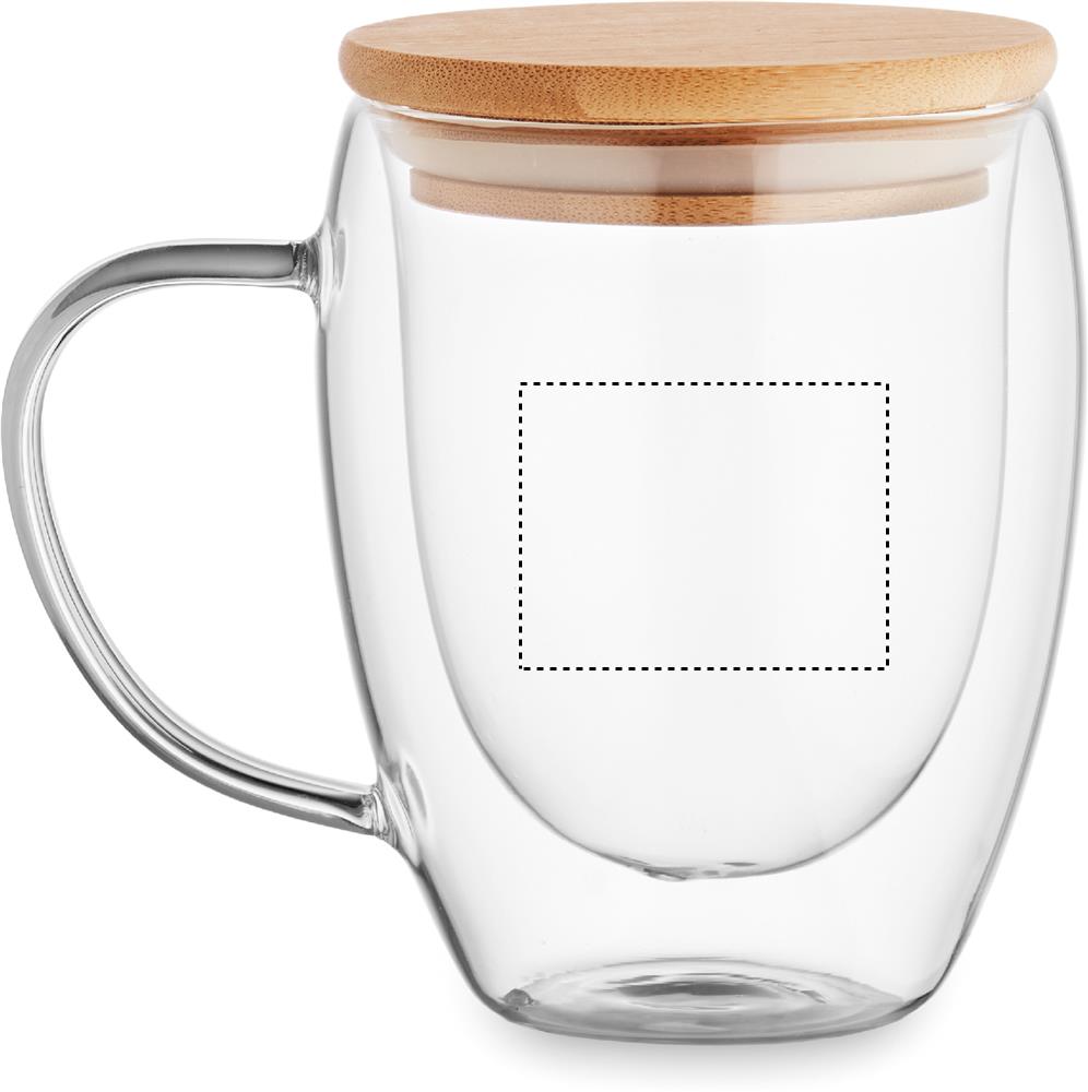 Divsienu borsilikāta stikla krūze ar rokturi un bambusa vāku. Tilpums: 250 ml.