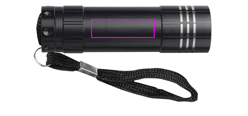Алюминиевый фонарик COB с шестью COB. Мы наносим ваш логотип с помощью лазерной гравировки на центральную часть. Без трех батареек AAA (закажите их немедленно, см. последнюю страницу или артикул 999400).