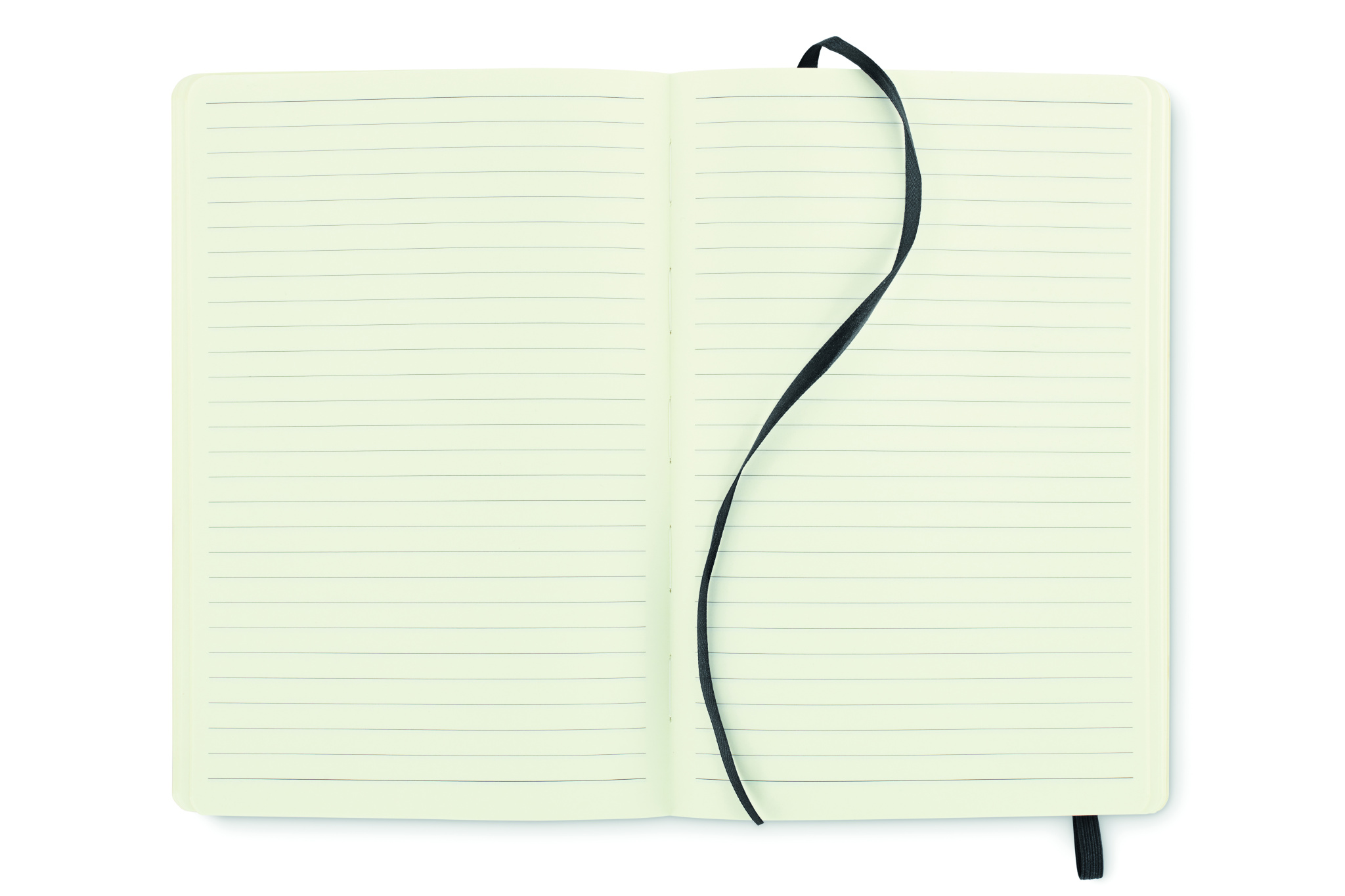 Блокнот формата А5 в мягкой обложке из переработанного полиуретана. В переплете. 160 линованных страниц (80 листов). Эластичный ремешок и закладка. Раздвигаемый внутренний карман на задней обложке. FSC®-certified | FSC MIX CREDIT, P7.1, FSC-C213206