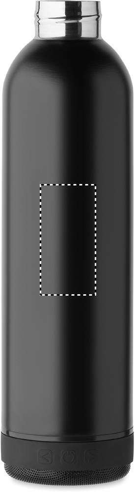 Бутылка с двойными стенками из переработанной нержавеющей стали (90%) и обычной нержавеющей стали (10%), силиконовый ремешок для переноски с отсоединяемой беспроводной колонкой 3 Вт. Объем: 500 мл. Аккумулятор 500 мАч. Отсоедините колонку, чтобы помыть бутылку. Герметична.