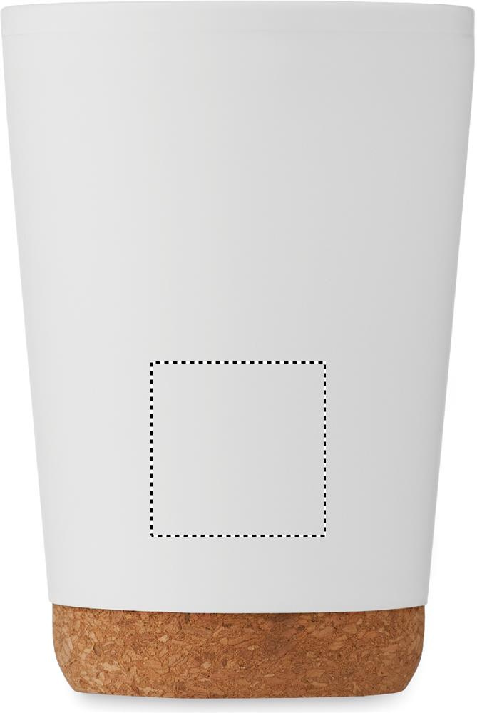Double wall tumbler in PP with cork base and slide closing drinking mouthpiece lid in PS and ABS. Capacity: 300 ml.