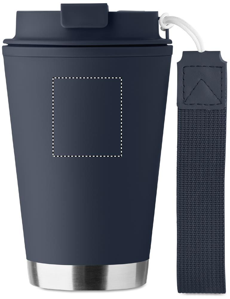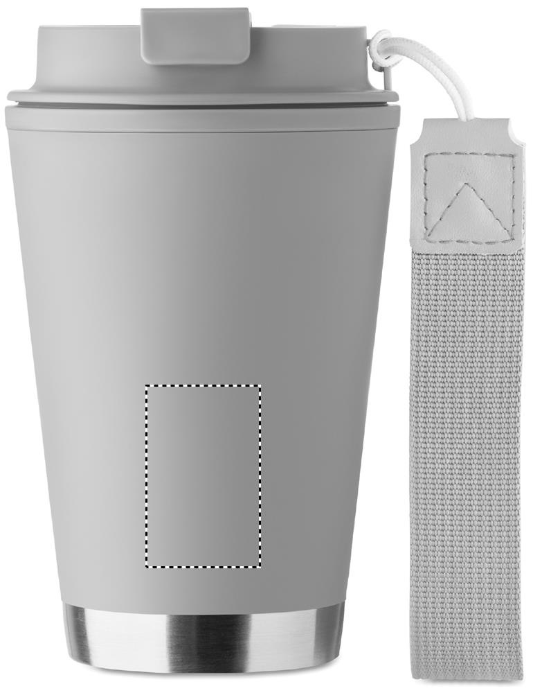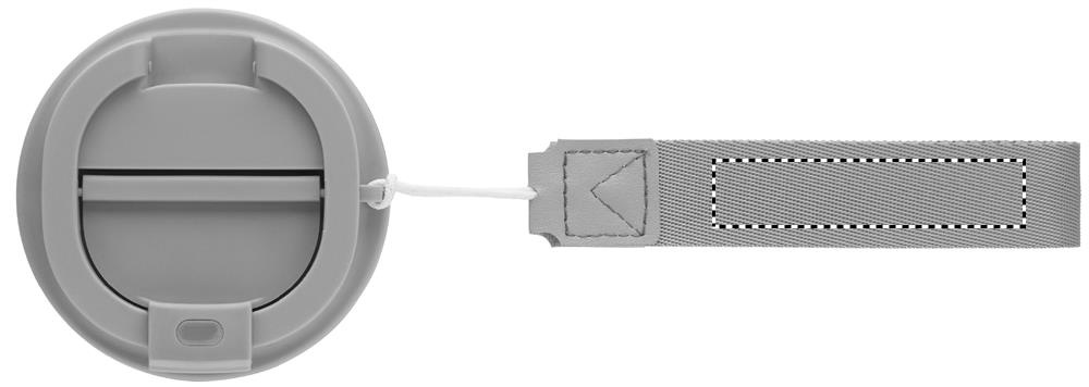 Double wall tumbler in PP inner wall, recycled PP outside wall, recycled stainless steel detail and RPET wrist strap. Capacity: 300 ml.