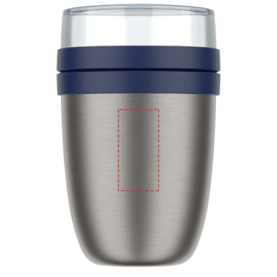 Герметичный пищевой контейнер с двумя раздельными отделениями, позволяющими хранить различные продукты отдельно друг от друга. Оба контейнера имеют отдельную крышку, чтобы ингредиенты не смешивались. Еда останется горячей в течение 6-8 часов и холодной в течение 12 часов. Объем верхнего прозрачного контейнера составляет 200 мл. Емкость нижнего контейнера составляет 500 мл. Изготовлен из прочного материала, внешняя часть контейнера остается холодной и сухой. Рекомендуется ручная мойка. Пластиковые части крышки можно мыть в посудомоечной машине.