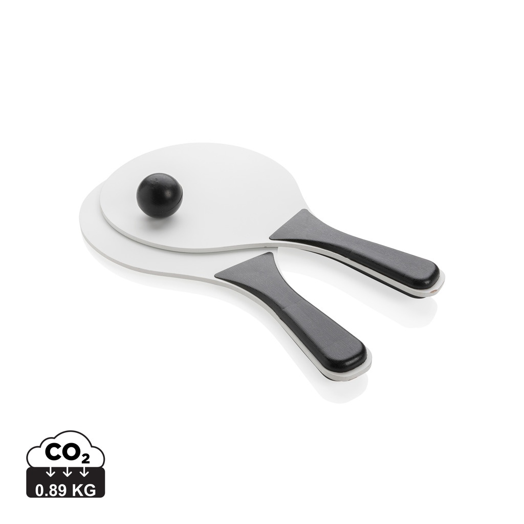 Набор пляжных мячей из МДФ с ручкой из ПП. Упакован в сетку, включая 1 мяч.