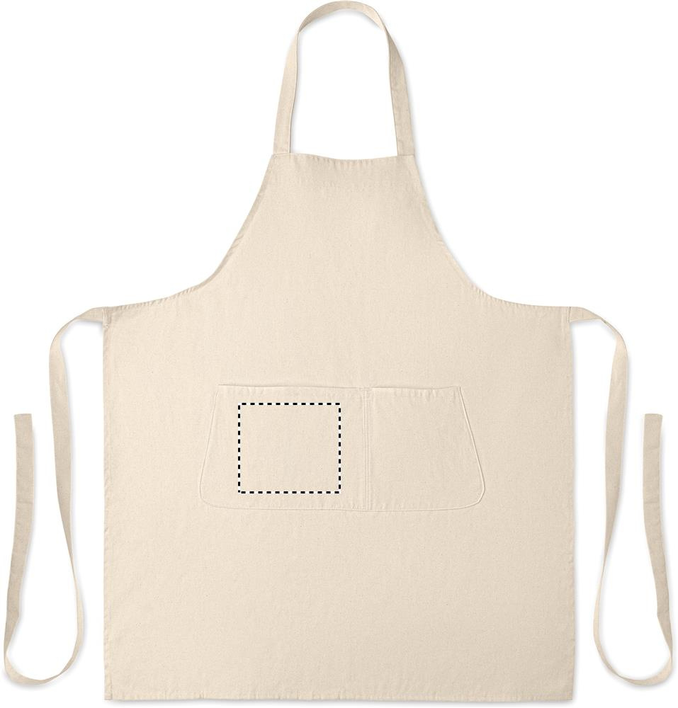 Adjustable bib apron with 1 large front pocket with 2 compartments in 240 gr/m² organic cotton. With adjustable button on the neck strap.