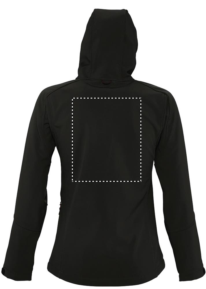 SOL'S REPLAY women softshell jacket 340g. Карманы на молнии по бокам и на груди, стягивающий шнур на талии регулируемые с помощью липучек манжеты капюшон со стягивающим шнуром. Fabric details: 94% полиэстер - 6% эластан. Флисовая подкладка: 100% полиэстер. 3 слоя. Водонепроницаемое покрытие: 8000 мм дышащее. OEKO-TEX. Only Sold with Print.