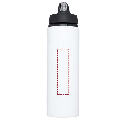 Алюминиевая бутылка с одинарными стенками и съемной крышкой с откидным носиком для питья. На крышке есть ручка для удобной переноски. Без содержания БФА. Объем 800 мл.