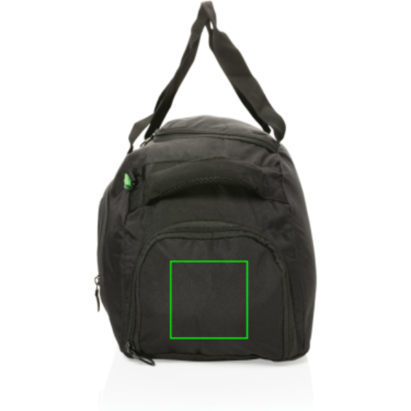 Ткань рипстоп 600D, передний карман на молнии с внутренними органайзерами, боковой карман, карман для обуви, тканые ручки и плечевой ремень, 4 ножки на основании, без ПВХ.