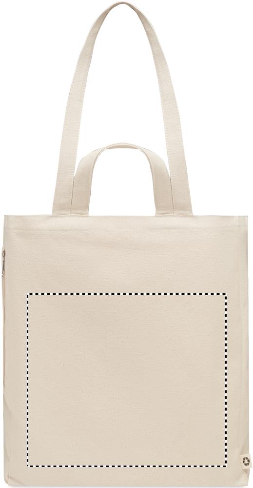 Сумка для покупок или пляжа из переработанного поликоттона (70% переработанного хлопка, 30% переработанного полиэстера) с короткими ручками. Имеет боковой карман на молнии гр/м² 380.