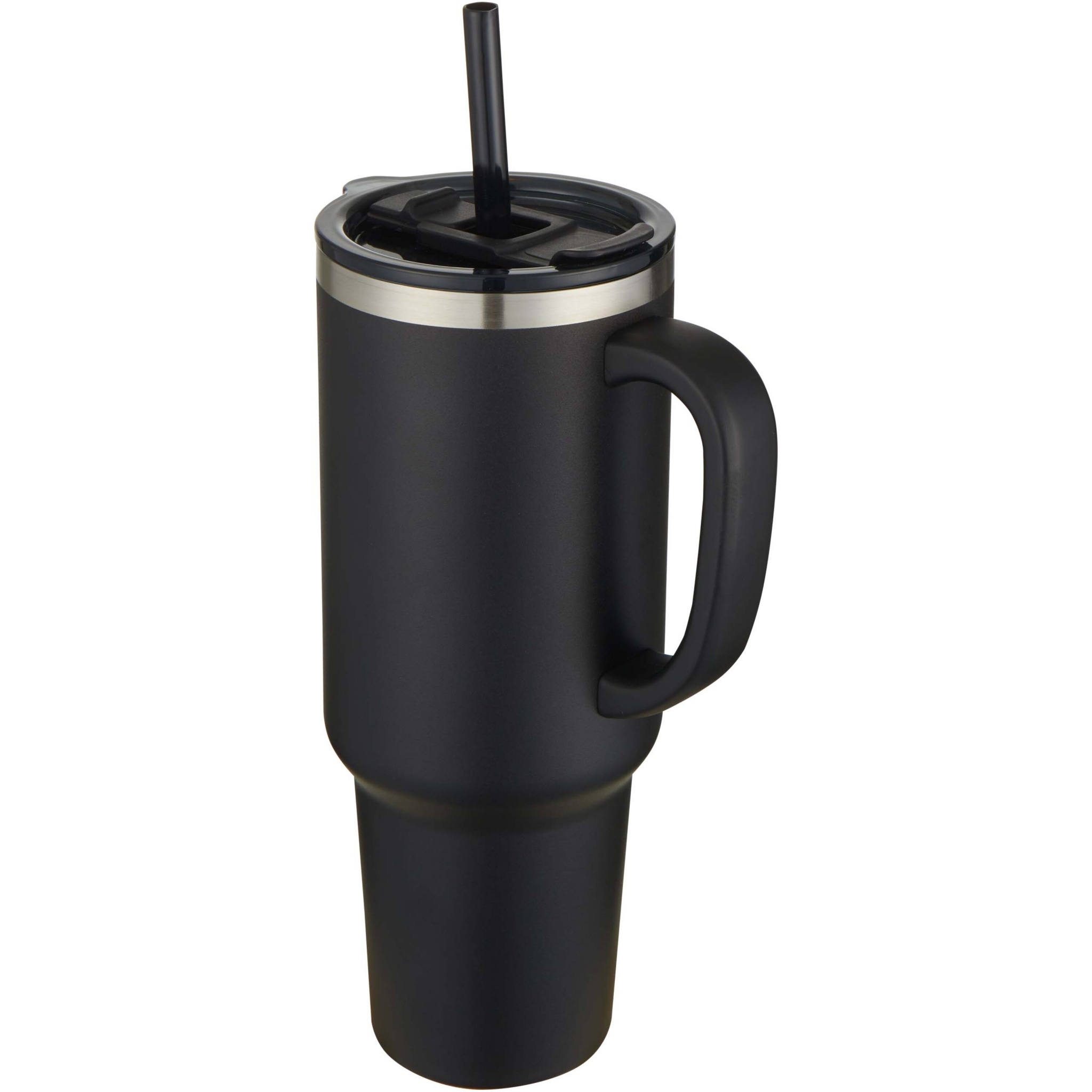 Кружка с двойными стенками из меди, сертифицированной RCS, и вакуумной изоляцией, изготовлена из нержавеющей стали, 91% которой подверглось вторичной переработке, сохраняет напитки холодными в течение как минимум 24 часов. Имеет соломинку Tritan и функцию слайдера крышки для предотвращения проливания. Прижимная поворотная крышка из 100% переработанного пластика надежно удерживает соломинку на месте и может легко поворачиваться, открывая отверстие для напитка. Прочное внешнее порошковое покрытие. Объем: 1200 мл. Только ручная мойка.