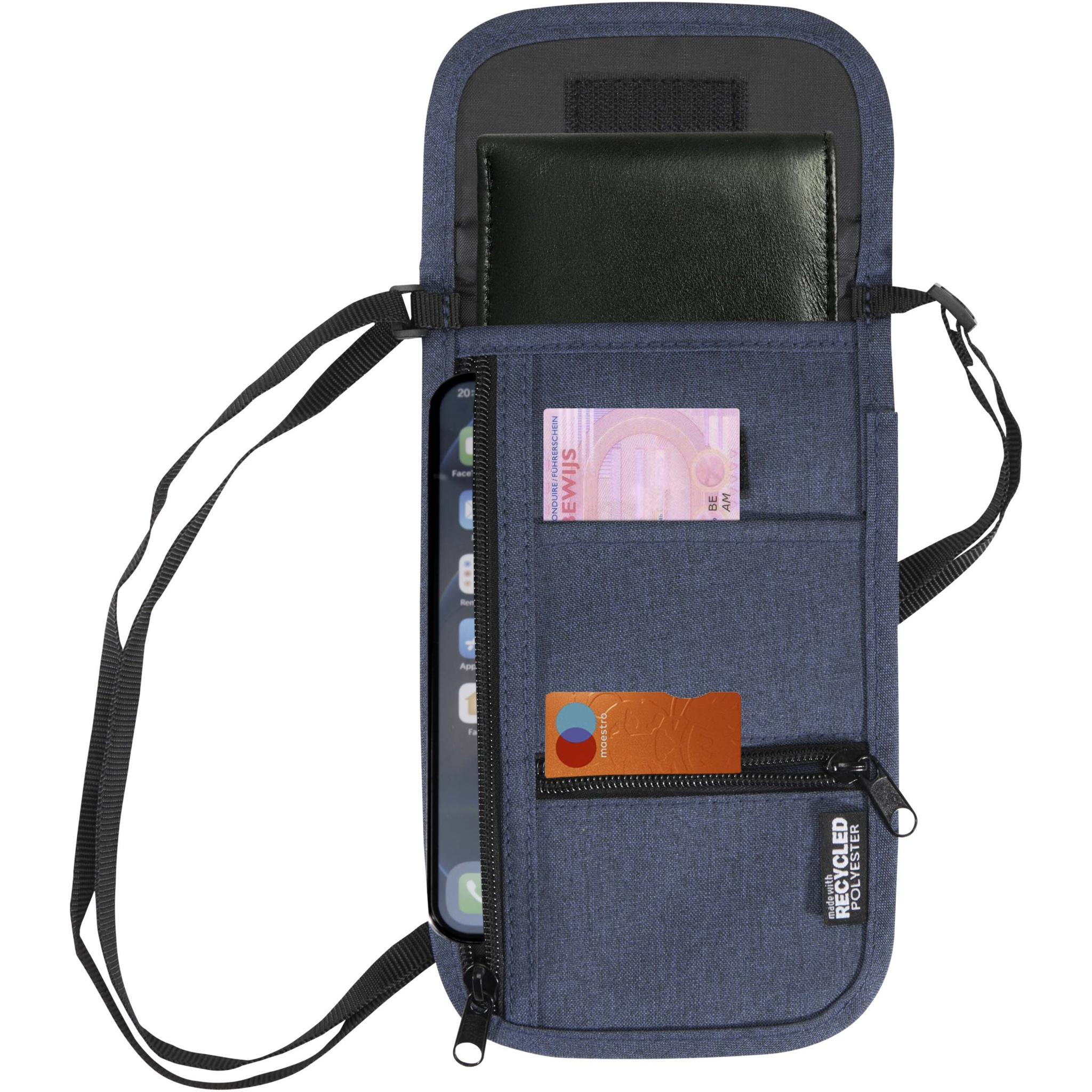 Дорожная смарт-сумка Ross изготовлена из переработанных материалов, сертифицированных согласно GRS, и предназначена для надежного и легкого хранения предметов первой необходимости в дороге. Компактная и практичная, она оснащена множеством карманов для телефона, портативного зарядного устройства, паспорта, карт, монет, кабелей и многого другого. Регулируемый ремень длиной до 130 см обеспечивает удобную переноску, что делает ее идеальным дорожным аксессуаром для современных исследователей.