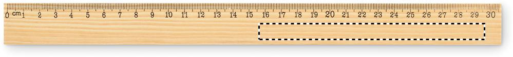 Pine wood ruler 30cm with centimetre scale on one side and inch scale on the other.