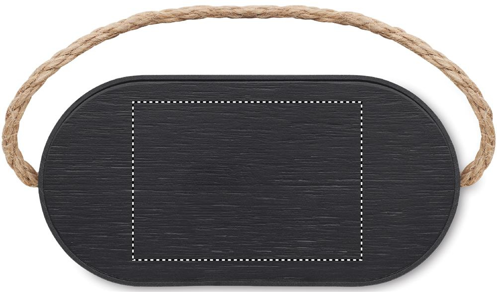 5.3 trådlösa högtalare i ABS med RPET polyestertyg och 15W trådlös laddare i bambu, med handtag i jute. 1 Uppladdningsbart Li-Ion 1200 mAh batteri. Uteffekt: 5W, 4 Ohm och 5V. Speltid ca 4 timmar.