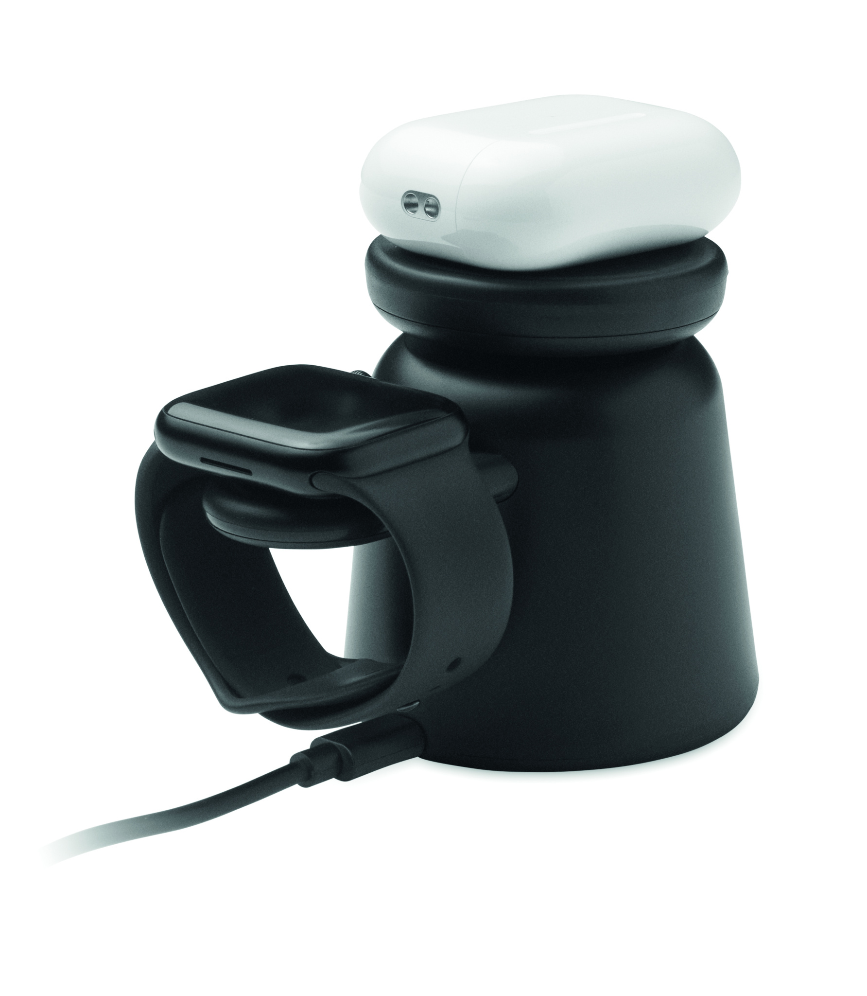 Logotrade reklamprodukter bild: 3 i 1 trådlös laddare 15W