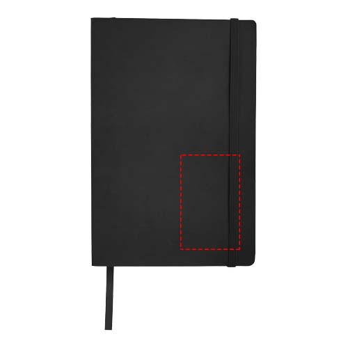 A5 anteckningsbok med soft touch-omslag, resårband, avdelare, dokumentficka invändigt på baksidan och 80 linjerade blad (80 g/m²). Journalbooks presentfodral.