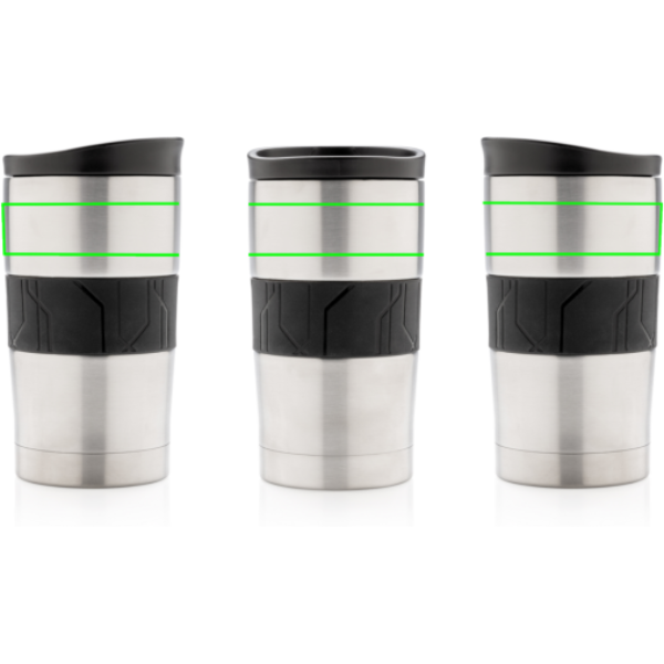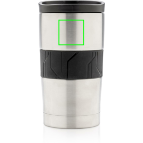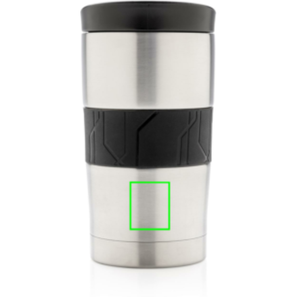 Läckagesäker vakuumisolerad mugg i dubbelväggig 304 stainless steel med silikongrepp och skjutlock. Kan diskas i maskin och passar i de flesta kaffemaskiner. Praktisk enhandsanvändning. Volym: 300ml.