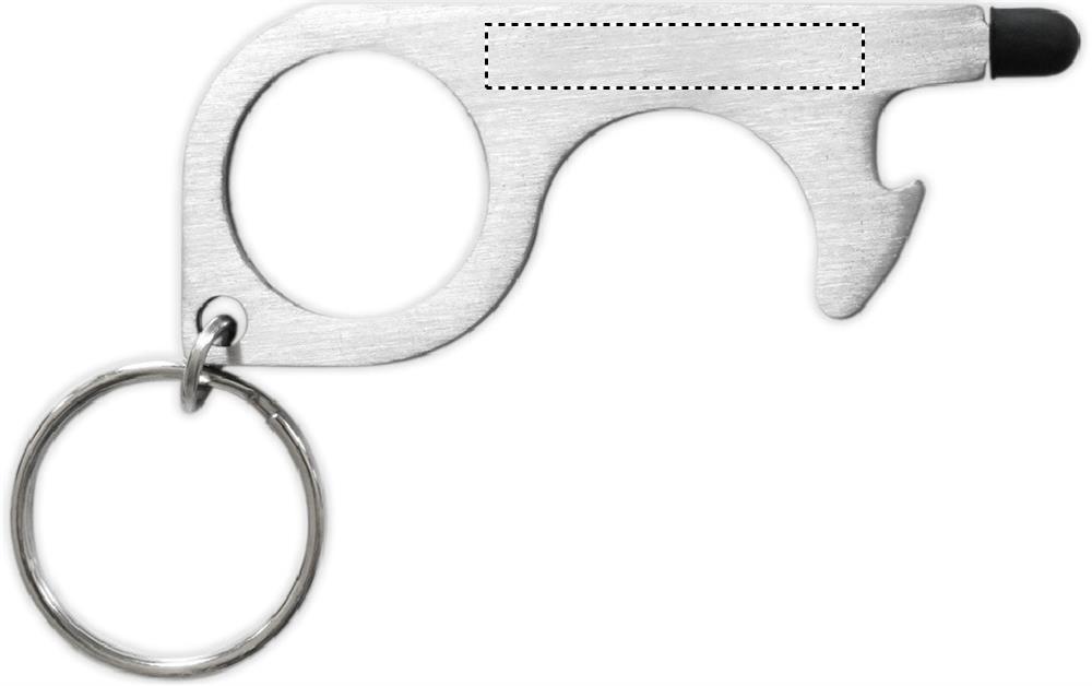 Hygieniskt multiverktyg 5-i-1 nyckelring, rostfritt stål. Minska beröring av te.x. öppna dörrar, tryck på hissar, trafikljus, automater och mobila enheter. Inklusive en flasköppnare, penna och nyckelring. Det enkla sättet att förhindra spridning av bakterier.