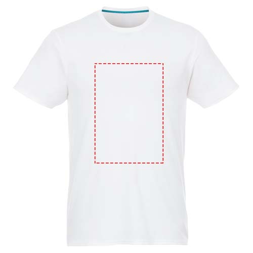 Jade kortärmad T-shirt för män med återvunnet material. Hållbara PR-plagg. Crewneck. Sidsömmar. Band mellan axlarna. Dubbelsömsdetaljer. Enkel jersey med 100 % återvunnen polyester. 160 g/m².