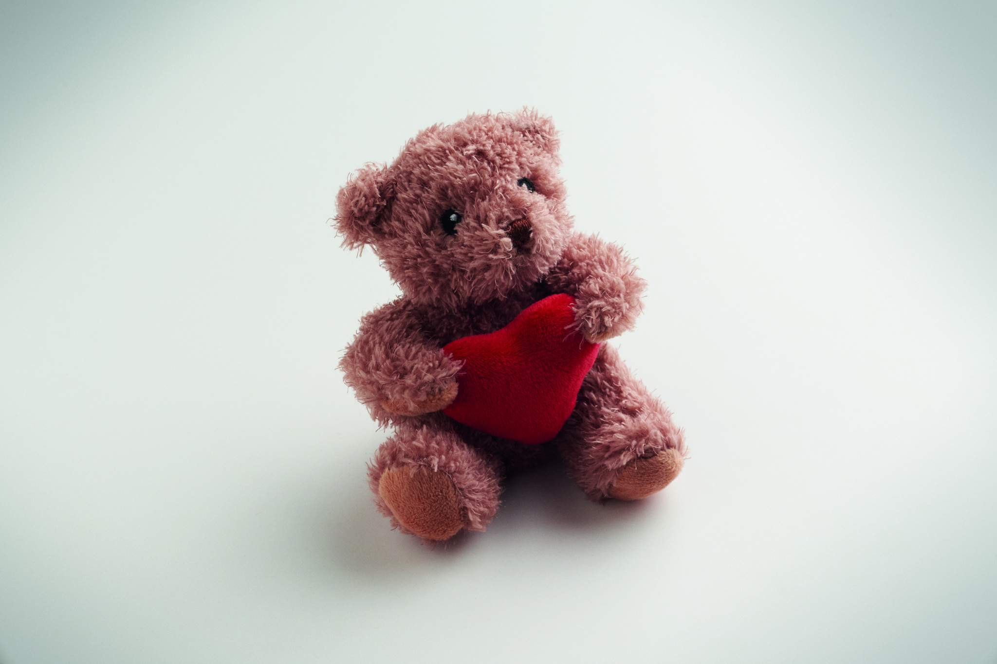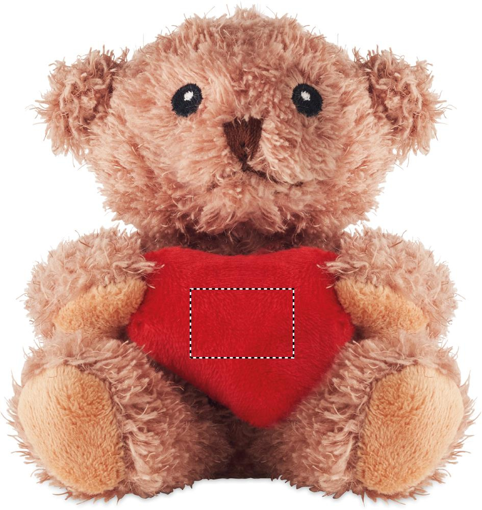 Nallebjörn av polyester som håller i ett rött hjärta, broderade ögon, näsa och mun.