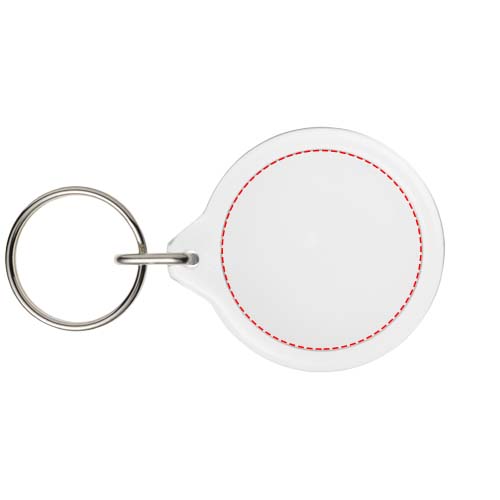 Orb rund nyckelring I7. Genomskinlig rund nyckelring I7 med delad metallring. Metallringen har en platt profil som är idealisk för utskick. Tryckinläggets diameter: 3,3 cm. GPPS-plast.