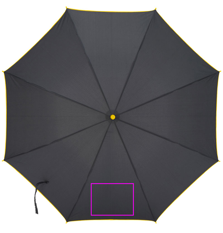 Automatiskt paraply av 190T pongee med glasfiberstavar, plasthandtag, färgad kant, handtag och ram. Vi trycker din logotyp på ett segment.