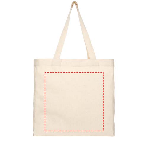 Tygväska på 210 g/m2 i återvunnen bomullspolyesterblanding. Återvunnen bomull är tillverkad av konsumentavfall som genereras av textilfabriker under skärprocessen. Tygväska med kil och stort huvudfack. Har två handtag med en höjd på 31 cm. Klarar upp till 10 kg vikt. Det kan finnas mindre variationer i färgen på den faktiska produkten på grund av produktionsprocessens art.