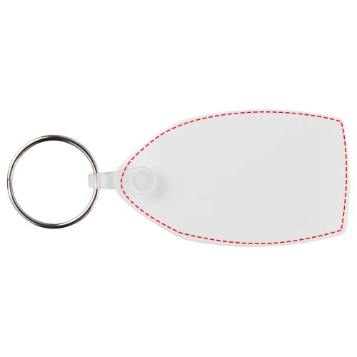 Vit rektangulär nyckelring med delad nyckelring i metall. Metallringen har en platt profil som är idealisk för utskick.