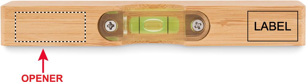 Vattenpass i bambu med inbyggd flasköppnare.